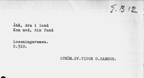//// I //// w //// ihå, dra i land //// Kom med, din fand \ //// Lossningsramsa. S.310. //// STRÖM.SY.VISOR 0.RAMSOR. //// 1 ////