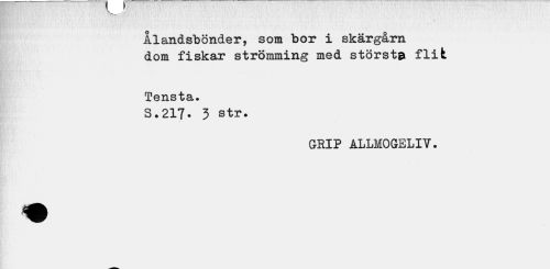 //// 'S, / //// Ålandsbönder, som bor i skärgårn dom fiskar strömming med största flit //// Tensta. //// S.217- 3 str. //// GRIP ALLMOGELIV. ////