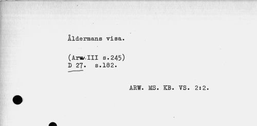 //// /V Vv.1";,' Ä ' . . rj '* ' , \ \ ¦ * /' v.- . ! * 1 .' ' ' '.'¦> • ¦ ['*',' - ' , v' ' / \ *' i T ',' 1'' •: ' 1 ftS n \ / Vi,"'.1 ".' . v ' V. i*/. \ ! 'v ' ' < '¦ . ' ^ '''.-1 //// < //// Ålderman //// s visa. //// (Arw.III s.245) D 27. s.182. //// ARW. MS. KB. VS. 2:2. ////