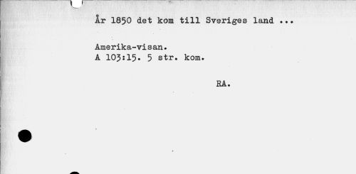 //// År 1850 det kom till Sveriges land ... //// Amerika-visan. A 105:15* 5 str. kom. //// RA. //// 9 ////