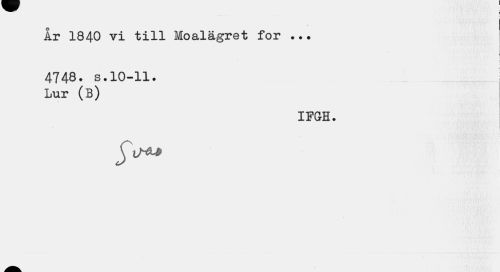 //// ... ! ir 1840 vi till Moalägret for ... //// , • / j //// 4748. s.10-11. Lur (B) //// IFGH. ////