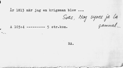 //// Ar 1813 när jag en krigsman blev //// t /Y&? stjnes ja ^ //// A 10^:4---5 str.kom. ^Mmm^ti ^^ //// v //// RÅ. ////