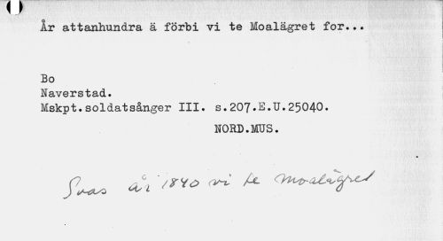 //// År attanhundra ä förbi vi te Moalägret for... //// i //// Bo //// Naverstad. //// Mskpt.soldatsånger III. s.207.E.U.25040. //// NORD.MUS. //// ? ////