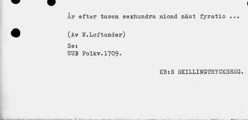 //// Är efter tusen sexhundra niond näst fyratio ... //// » //// (Av N.Loftander) Se: //// UTJB Polkv.1709. //// KB:S SKILLINGTRYCKSREG. //// * //// L___.___L___ ___ ////