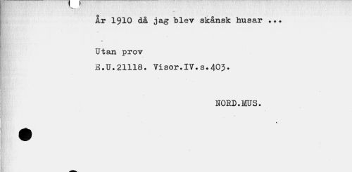 //// ir //// 1910 då jag blev skånsk husar • •• Utan prov //// E.U.21118. Visor.17.s.403. //// NORD.MUS. ////