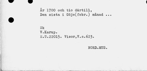 //// År 1700 och tio därtill, //// Den sista i Göje(febr.) månad ... //// Sk //// ¥. Kamp. //// E.U.22015. Visor,V.s.623. //// NORD.MUS. //// ___:___tu.___¦___ ////