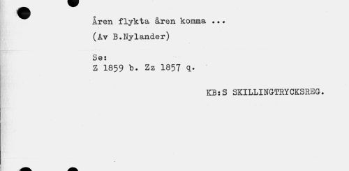 //// Aren flykta åren komma ... (Av B.Nyländer) //// Se: //// Z I859 b. Zz I857 q. //// KB:S SKILLINGTRYCKSREG. ////