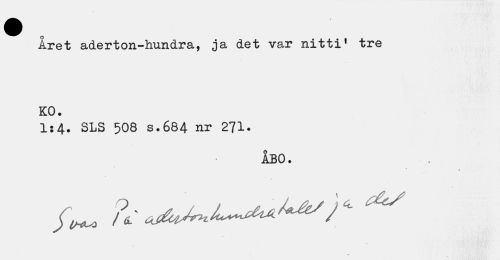 //// Året aderton-hundra, ja det var nitti' tre KO. //// 1:4. SLS 508 s.684 nr 271. //// ÅBO. ////