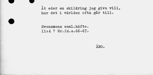 //// At eder en skildring jag giva vill, hur det i världen ofta går till. //// Svenssons saml.häfte. //// 11:4 ? Nr.24.s.66-67. //// ÅBO. ////