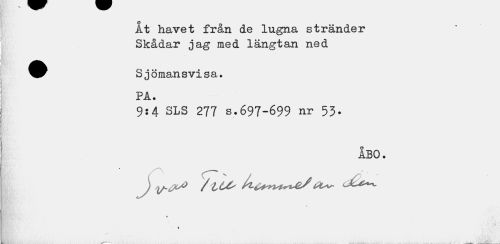 //// Åt havet från de lugna stränder Skådar jag med längtan ned //// Sjömans vi sa. PA. //// 9:4 SLS 277 S.697-699 nr 53. //// ffiKfi //// åbo. //// ) /lUs h-i+m^eS //// B //// •¦V //// . ////