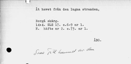 //// m^mm^mm wm> "mmm i //// At havet från den lugna stranden, //// » //// ¦ //// Borgå skärg. //// 14:4. SLS 17- s.6-9 nr 1. //// N. häfte nr 2. s.73- nr X. //// ÅBO. //// /1 % ^t^^ ^ //// # ////