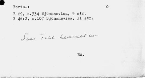 //// Ports.: 2. //// B 29, s.334 Sjömansvisa, 9 str. B 46:2, s.107 Sjömansvisa, 11 str. //// SlM TcUC //// RÅ. ////