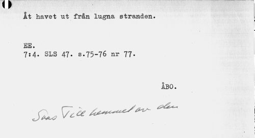 //// v r //// Åt havet ut från lugna stranden. i //// ¦ //// i //// ee. //// 7:4. SLS 47- s.75-76 nr 77- //// i //// åbo. //// i i //// « I ////