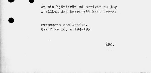 //// it min hjärtevän så skriver nu jag i vilken jag haver ett kärt behag, //// Svenssons saml.häfte. //// 9:4 ? Nr 16, s.194-195. //// ÅBO. //// ... //// ¦ //// fty ' (. ,' ' //// K I //// Hnf^ ////