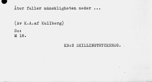 //// Åter faller mänskligheten neder //// v //// (Av K.A.af Kullberg) //// Se: M 18. //// KB:S SKILLINGTRYCKSREG. . //// \ ////