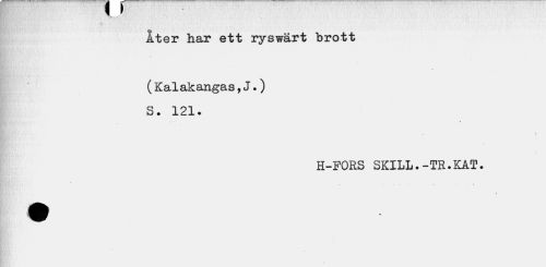 //// Ater har ett ryswärt brott //// (Kalakangas,J.) //// s. 121. //// h-fors skill.-tr.kåt. //// .. . i t //// \ ////