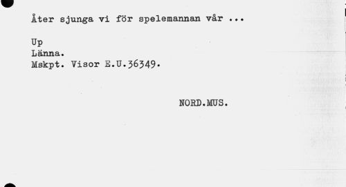 //// Åter sjunga vi för spelemannan vår ... i //// Up //// Länna. //// Mskpt. Visor E.U.36349. //// I //// »i j //// i //// I 1 //// NORD.MUS. ////