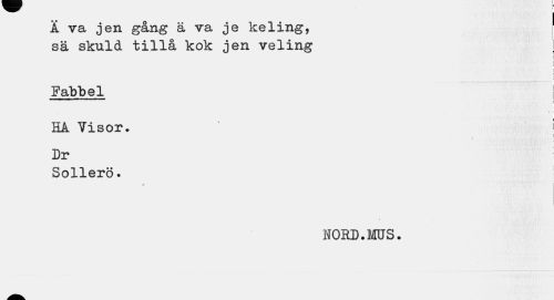 //// Ä va jen gång ä va je keling, sä skuld tillå kok jen veling //// i //// i i //// i //// i //// Fabbel j //// i //// HA Visor. i //// i //// Dr //// Sollerö. //// NOED.MUS. ////