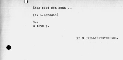 //// v___J //// Ädla blod som rann ... //// (Av L.Larsson) //// Se: //// E 1898 p. //// KB:S SKILLINGTRYCKSREG. //// f ... • • //// * . - '.v ////