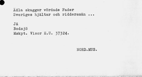 //// Ädla skuggor vördade Fader Sveriges hjältar och riddersmän ... //// Jä //// Bodsjö //// Mskpt. Visor E.U. 37324- //// « //// NORD.MUS. //// / //// .1 > . . ___. ... ' ' ' • '' I ¦•• u ////