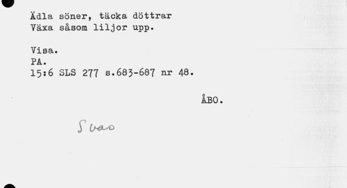 //// Ädla söner, täcka döttrar Växa såsom liljor upp. //// Visa. PA. //// 15:6 SLS 277 S.683-687 nr 48. //// ÅBO. //// r ////