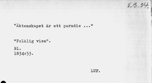 //// 2St> . ^ ( //// I //// "Äktenskapet är ett paradis ..." //// i i //// t > //// t i //// "Folklig visa". Bl. //// 1834*53. I //// ! //// ¦ //// i //// LTJP. ////
