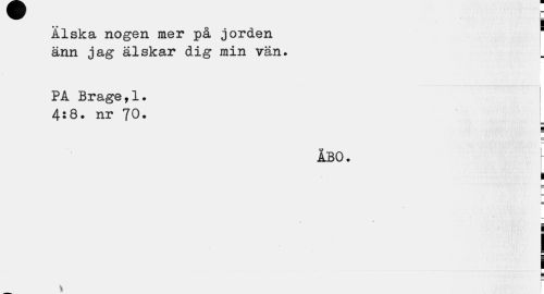 //// Älska nogen mer på jorden ® //// änn jag älskar dig min vän. //// PA Brage,l. 4:8. nr 70. //// ¦ //// ÅBO. //// i //// | //// i //// B //// i ' ////