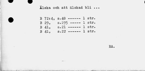 //// Älska och att älskad bli ... //// A B 72:4, s.48---1 str. //// W B 29, s.295 --- 1 str. //// B 41, s. 21---1 str. //// B 41, s. 22---1 str. //// K //// RA. //// Tji*-*.:. //// „ //// l it /. >/i m. ii . f , ////