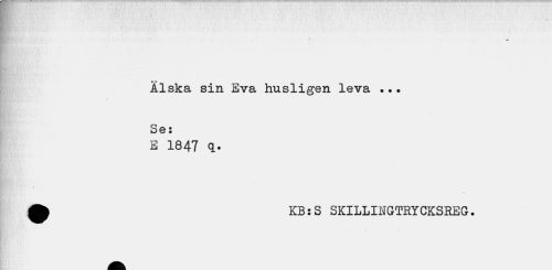 //// T //// «r //// Älska sin Eva husligen leva ... Se: //// E 1847 q. //// ^ KB:S SKILLI1TOTRYCKSREG. ////