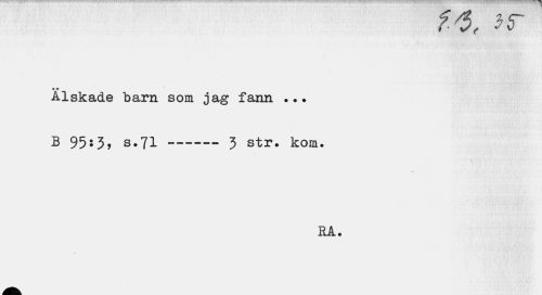 //// Älskade barn som jag fann ... //// B 95s3» s.71---3 str. kom. //// RA. //// » ////