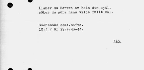 //// Älskar du Herren av hela din själ, söker du göra hans vilja fullt väl. //// Svenssons saml.häfte. //// 10:4 ? nr 29.s.43-44- //// ÅBO. ////