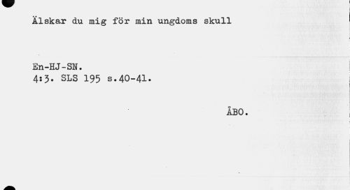 //// Älskar du mig för min ungdoms skull //// ¦ //// En-HJ-SN. //// 4:3. SLS 195 s.40-41. //// ÅBO. //// f l ////