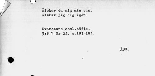 //// / / //// t J //// / / //// f y //// j / Älskar du mig min vän, //// / älskar jag dig igen //// Svenssons saml.häfte. //// 3:8 ? Nr 24- s.183-184- //// ÅBO. //// % ////