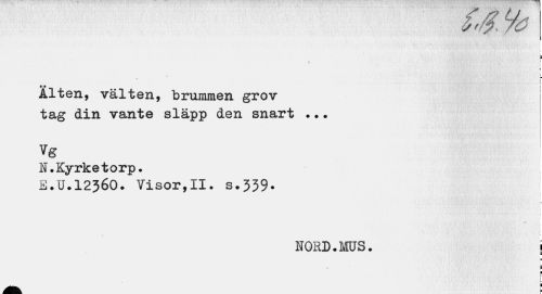 //// i //// : //// i //// jjjjji i Alten, välten, brummen grov //// tag din vante släpp den snart ?.• //// Vg //// N.Kyrketorp. //// E.U.I236O. Visor,II. s.339- //// r //// > //// » //// HORD.MUS. I //// m //// i ¦ //// L //// —- I //// Mm ////