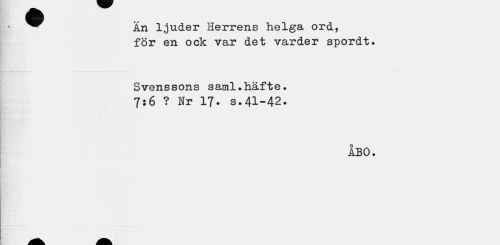 //// ^^ Än ljuder Herrens helga ord, //// för en ock var det varder spordt. //// Svens sons saml•häfte. //// 7:6 ? Nr 17. s.41-42. //// ABO. ////