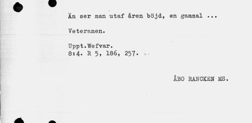 //// Än ser man utaf åren böjd, en gammal ... //// Veteranen. //// Uppt.Wefvar. //// 8:4- R 5, 186, 257- «* //// ÅBO RANCKiSN MS. ////