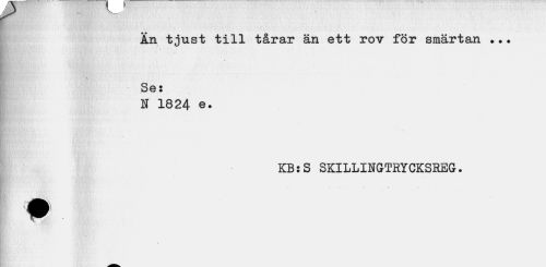 //// Än tjust till tårar än ett rov för smärtan ..• //// v //// Ses //// N 1824 e. //// KB s S SKILLINGTRYCKSREG. //// V : ////