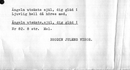 //// Ängeln utsänts själ, dig gläd 1 //// Ljuvlig hell då höres med, j //// Ängeln utsänts,själ, dig gläd l //// Nr 82. 8 str. Mel. I //// ål //// ' ¦ ¦'• !/• låm ' //// ms //// BRODIN JULENS VISOR. //// i //// i m' //// ¦ //// '' M- //// ' ' A) ' i //// ¦J UfhV1--/1 4 //// I ¦ f. //// m iI //// • By i ,,.<> ¦ //// ' |'f / I //// ¦ //// • -v | v Ii' » _ . Si: k . • i - k> ...v Mlf: : : H ; ' ////