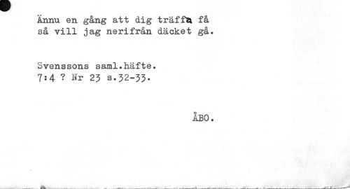 //// Ännu en gång att dig träffa få så vill jag nerifrån däcket gå. //// Svenssons saml.häfte. 7:4 ? Hr 23 s.32-33. //// ABO. ////