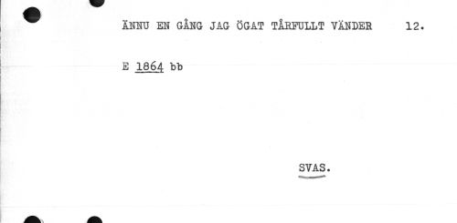 //// ÄNNU EN GÅNG JAG ÖGAT TÄRFULLT VÄNDER 12. //// E 1864 bb //// SVAS. ////