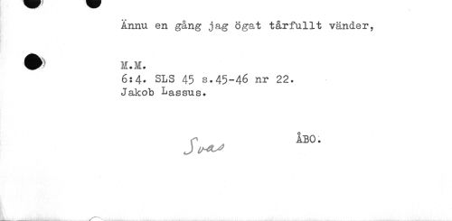 //// Ännu en gång jag ögat t år full t vänder, //// 6:4- SLS 45 s.45-46 nr 22. //// Jakob Lassus. //// ÅBO. //// J ////
