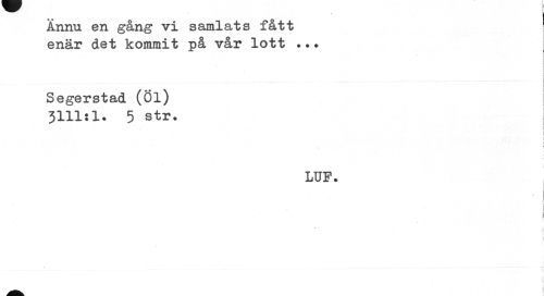 //// Ännu en gång vi samlats fått ' //// enär det kommit på vår lott ..? //// i //// Segerstad (Öl) //// 3111:1. 5 str. | //// i //// i //// LUF. //// » //// ¦ ' . ' ] //// I //// I ////