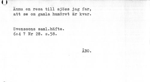 //// Ännu en resa till sjöss jag far, att se om gamla humöret är kvar. //// Svenssons saml.häfte. 6:4 ? Nr 28. s.58. //// ÅBO. ////