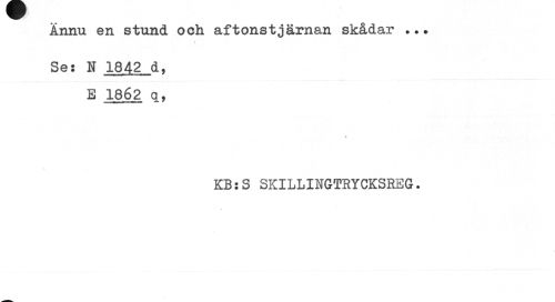 //// Ännu en stund och aftonstjärnan skådar ... //// i //// Se: N 1842 d, E 1862 q, //// # //// KB:S SKILLINGTRYCKSREG. ////