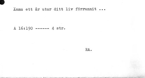 //// Ännu ett år utur ditt liv förrunnit ... //// A 16:190---4 str. //// RA. ////