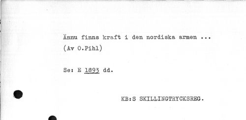 //// t • ? //// Ännu finns kraft i den nordiska armen ... (Av O.Pihl) //// Se: E 1895 dd. //// ® KB:S SKILLIuGTRYGKSREG-. ////
