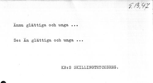 //// i. ft, 9/ //// r i i //// * //// Ännu glättiga och unga .. ? //// i //// Se: Än glättiga och unga //// kbss skillingtrycksreg. ////