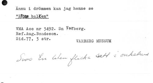 //// Ännu i drömmen kan jag henne se "Efter "balten" //// VMA Acc nr 3492. Sn Isberg. Ref.Aug.Bondeson. //// Sid.77, 3 str. VARBBRG MUSEUM ////