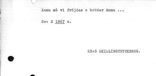 //// Ännu må vi fröjdas o bröder ännu ... //// Se: E 1867 u. //// KB:s skillingtrycksreg. ////