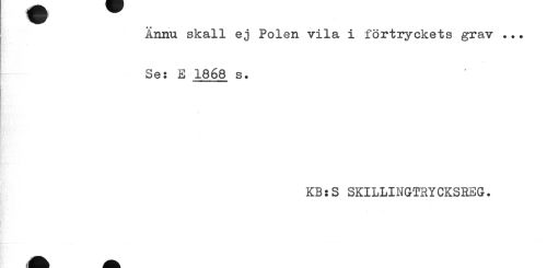 //// Ännu skall ej Polen vila i förtryckets grav ... Ses E 1868 s. //// KB:S SKILLINGTRYCKSRBG. ////